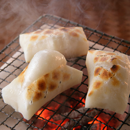 自家裁培米こがねもち米を、昔ながらの手作業で丹念につき上げました。粘りやコシが強い厚切り仕立て。農家手づくりの人気商品です!